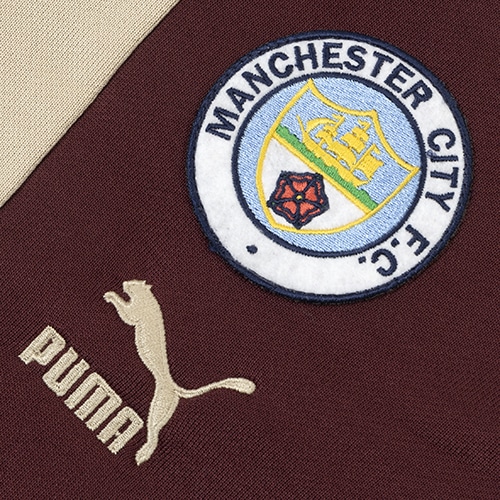 右脚にあしらわれたマンチェスター・シティの刺繍オフィシャルエンブレムとプーマロゴの刺繍が特徴的な一枚。ウエストにはフィット感の調整ができるドローコード付きです。サイドにはプーマを象徴するT7のサイドテープを施し、クラシックなデザインに仕上げました。