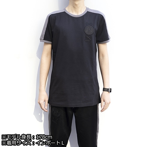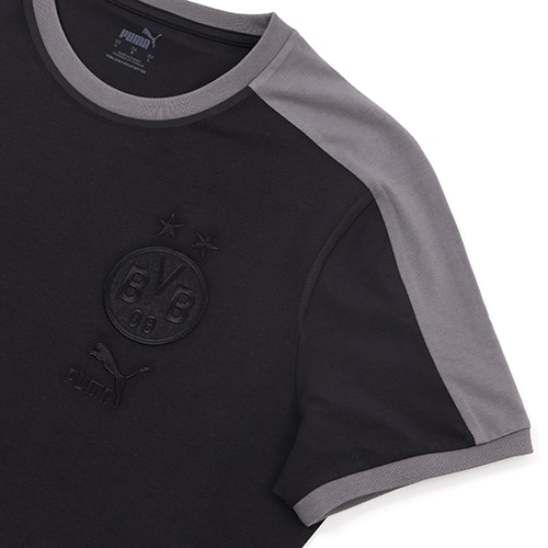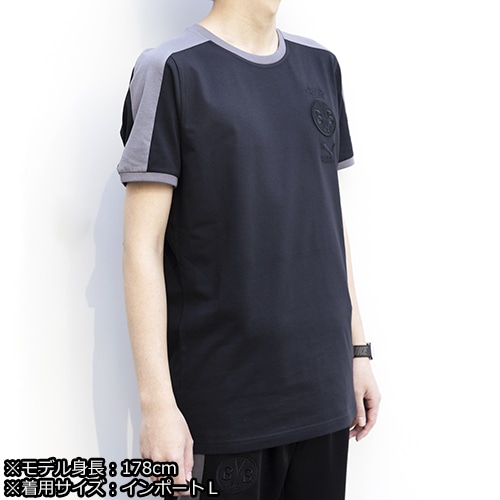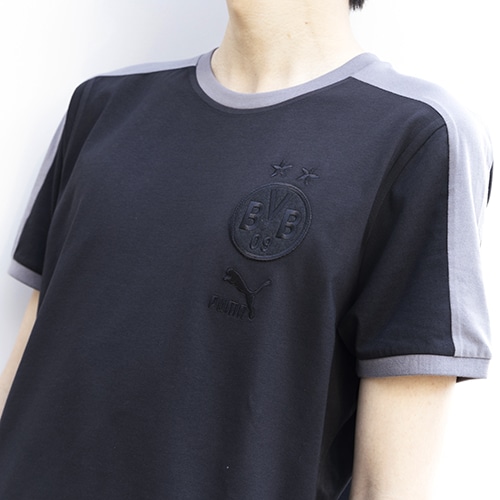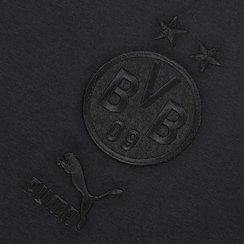 左胸にあしらわれたボルシアドルトムントの刺繍紋章とプーマロゴが特徴的な一枚。袖にはプーマを象徴するT7のサイドラインをあしらいました。