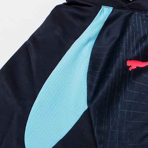 マンチェスターシティのプレマッチウェアの長袖が登場。すっきりとしたシルエット、またdryCELLを採用することで吸水速乾機能が高く、試合やトレーニングに最適です。胸元にはマンチェスターシティーのオフィシャルエンブレムとプーマキャットロゴ入り。