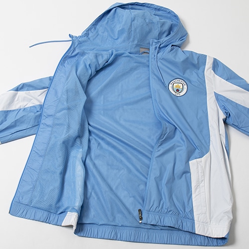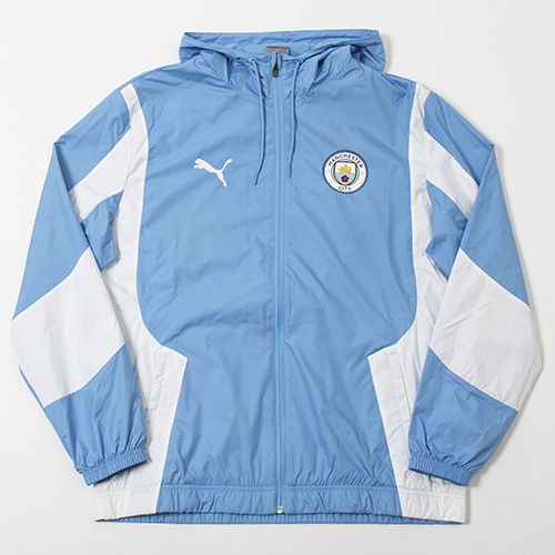 - プレミアリーグ(イングランド)・マンチェスター・シティの2023-2024シーズンモデルプレマッチウーブンジャケット。公式戦試合前トレーニング時に選手着用予定のモデル。*インポートサイズ表記。