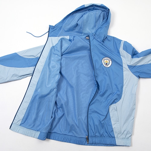 - プレミアリーグ(イングランド)、マンチェスター・シティの2023-2024シーズンモデルプレマッチウーブンジャケット。公式戦試合前トレーニング時に選手着用予定のモデル。