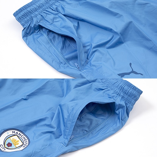 2023-24シーズンのマンチェスターシティFCの新プレマッチウーブンパンツが登場。公式戦試合前のトレーニング時に選手が着用予定のアイテムです。右側にプーマキャットロゴ、左側にクラブのオフィシャルエンブレムを施しました。独自の冷たい外気を防ぐwindCELL機能、通気性を確保するメッシュ裏地により快適な着心地を実現。