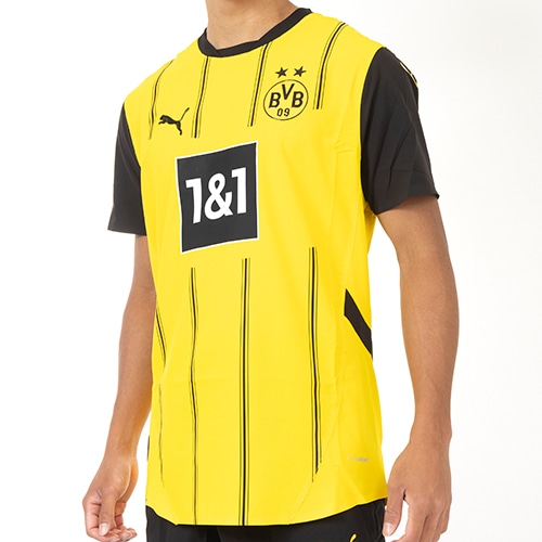 クラブの伝統に忠実な今シーズンのホームキットは、シグネチャーカラーである黄色と黒、ピンストライプデザインを組み合わせ、ボルシア・ドルトムントのエッセンスを体現したデザイン。