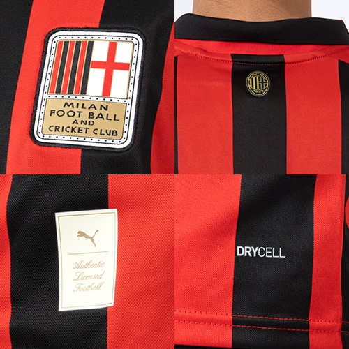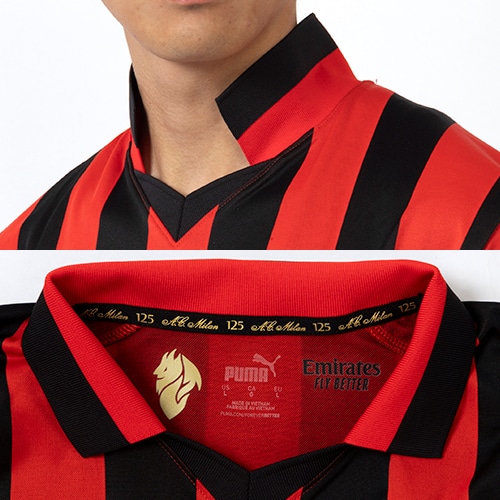 セリエA(イタリア)、ACミラン125周年記念コレクションのオーセンティックレトロ長袖ユニフォーム(選手着用モデル)。