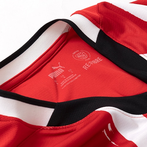 PSVは自らをアウトローと位置づけ、常識を破壊しあらゆる期待を上回ります。アウトローとして型破りな方法で自分自身を表現し、奇抜なSNSやメディア投稿、ゲッツェやシャビシモンズの契約などが世間を賑わしました。こうして伝統的なストライプを新鮮さと共に表現したデザインとなっています。