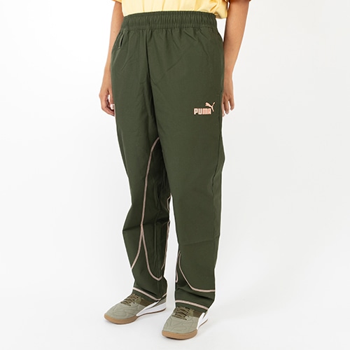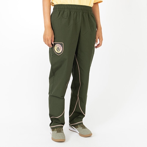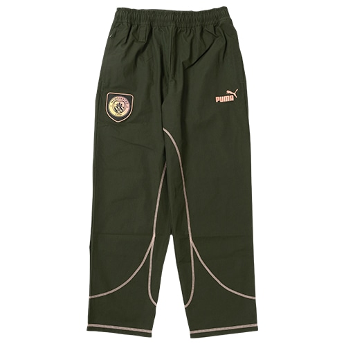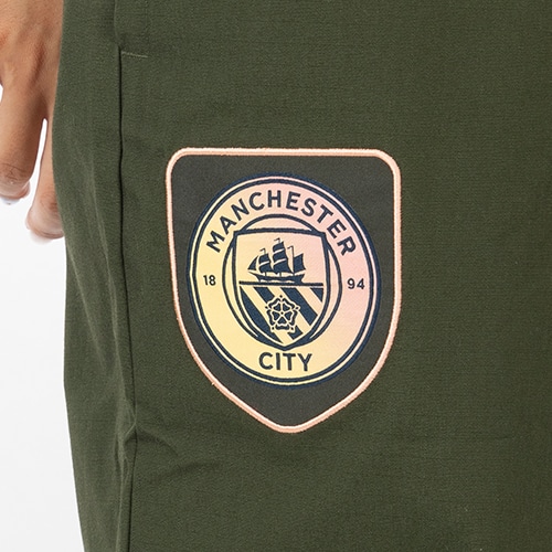 伸縮性のあるウエスト、スリムフィットのすっきりとしたシルエットのアイテムです。落ち着いたトーンのカーキカラーをベースに、フラットロック・ステッチがデザインのアクセントに。脚にはマルチレイヤーのクラブシリコンバッジ、プーマロゴを採用しています。このウェアを着てシティーのプライドを示そう。