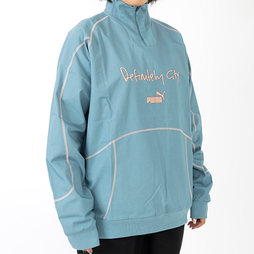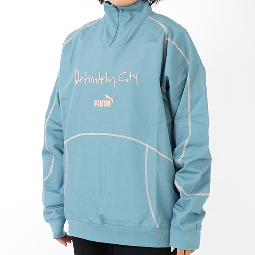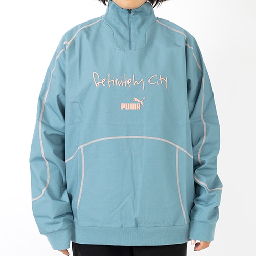 フロントにはプーマロゴ、DEFINITELY CITY KITロゴを採用しています。シティーのチームカラーであるライトブルーをベースに、パイピングのデザインがアクセントに。首元は高さのあるスタンドアップカラー、裾と袖はリブ仕様になっておりスポーティーな印象を与えてくれる一着です。アクティブシーンはもちろん、カジュアル用としてもおすすめのアイテムです。