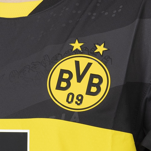 黄色のバーがある黒を基調としたジャージには「ボルシアによって団結」の文字が描かれている。このモットーはジャージのパターンにも手話で繰り返され、点字で統合されている。首元のプリントの最初の行は「ボルシアによって団結」を意味し、その下には「Borussia verbindet」という意味がある。このジャージはクラブの多様性と、開かれた社会を支援するために人種差別、反ユダヤ主義、LGBTIQ*への敵意、性差別、差別に反対する絶え間ない取り組みを表している。