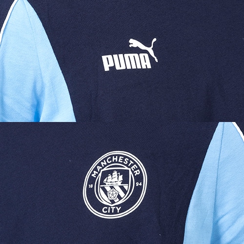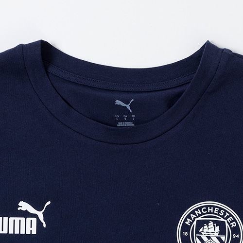 胸には象徴的なプーマキャットロゴを採用しています。エティハドスタジアムでの応援に最適なレギュラーフィットと大胆なラバープリントが特徴の一着です。