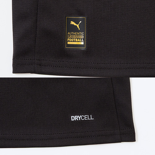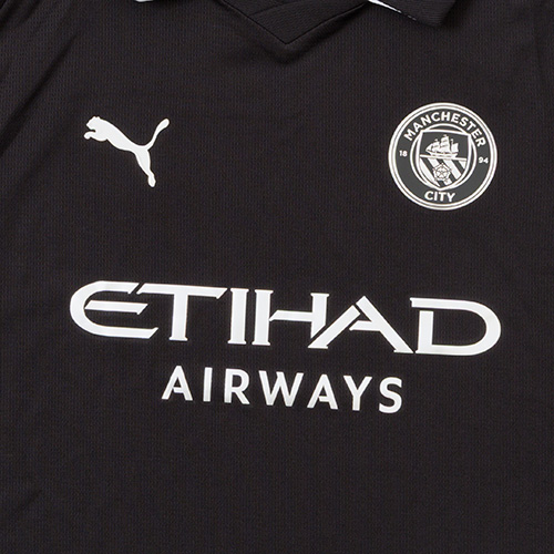 クラブ創設初期の「シティズンズ(Cityzens)」へのオマージュであり、クラブの革新性を再解釈したデザイン。オールブラックのデザインは、クラブ最古のユニフォームにインスパイアされており、マンチェスター・シティの時代を超えた本質を称えるメタリックなディテールがあしらわれています。マンチェスター・シティの最古のユニフォームは1884年に遡り、当時クラブはゴートンに拠点を置いていました。この象徴的なキットはクラブのレガシーの象徴であり、そのデザインを洗練された新たな形で蘇らせ、クラブの起源を称えています。このデザインはクラシックとコンテンポラリーを融合しており、歴史的なユニフォームに着想を得たスタイリッシュなオールブラックのルックに、白のトリムがついた伝統的な襟を合わせています。メタリックなエンブレムとシルバーのディテールが黒のベースカラーに独自のコントラストを与え、このキットに特別な美的価値を加えています。