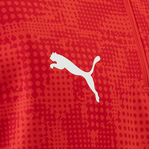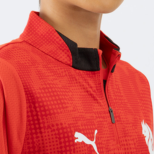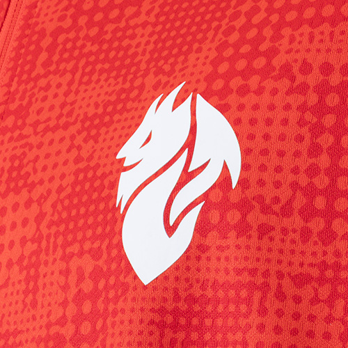 スリムフィットとメッシュパネルが、最高のパフォーマンスを発揮するための体温調節を可能にする。親指の穴とジッパーが快適な着心地を提供し、大胆な袖のグラフィックがロッソネリの誇りを表現します。