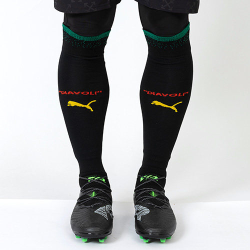 セリエA(イタリア)、ACミランの2024-2025シーズンの「Off-White」コラボレーションコレクション、4thモデル グラフィックソックス。