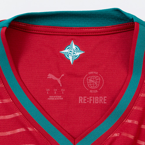 さりげない波のグラフィックと海事コンパスのバックネックサインオフが、ポルトガルの豊かな海軍の歴史と海との繋がりに敬意を表し、バンデイラ・ダ・リパブリカ・ポルトガルの特徴的なクラブレッドとグリーン・ラグーンカラーが、胸元にあしらわれた伝説的な国章と調和し、世界に届けたいという情熱を表現しています。関連商品