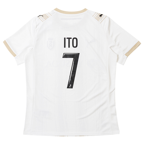 - リーグ・ドゥ(フランス)スタッド・ランス 2025-2026シーズン AWAY ユニフォーム(サポーター着用モデル)、#7 伊東 純也 付き。