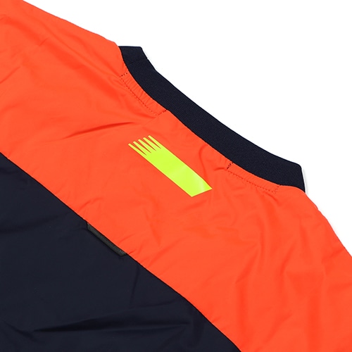 - 寒い時期のアップ時や移動時に着用するジュニア用ピストトップ。撥水加工を施したナイロンタフタを表地に、プレイ時の張り付きを防ぐメッシュを身頃の裏地に採用しました。