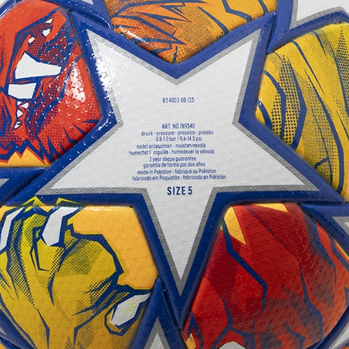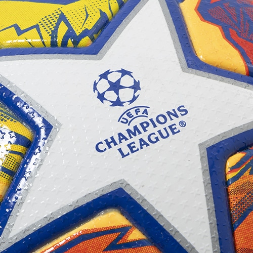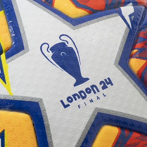 決勝戦の開催都市ロンドンにインスピレーションを得たデザイン及びカラーリング。大舞台でのステージでも目立つように作られた星型スターパネル間で戦う 2 頭のほえるライオンを描いた鮮やかなグラフィックにて、今シーズン決勝戦の開催都市ロンドンを祝います。またライオンはイングランドと首都ロンドンの豊かな歴史と文化の象徴であると共に、選手たちの勇気と強さ、そしてヨーロッパのフットボールクラブが最も切望する優勝トロフィーへの威厳も表しています。