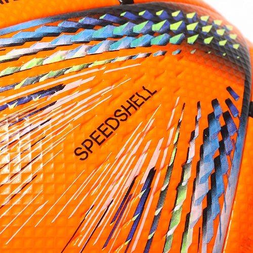 ●新形状・スピードシェル パネルシェイプ:他に類を見ないアディダス独自の新形状「スピードシェル」。大小2種類の異形状のパネルを20枚使用した組み合わせは、より良い飛行安定性に貢献します。