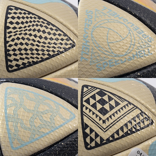 ●新形状・スピードシェル パネルシェイプ:他に類を見ないアディダス独自の新形状「スピードシェル」。大小2種類の異形状のパネルを20枚使用した組み合わせは、より良い飛行安定性に貢献します。