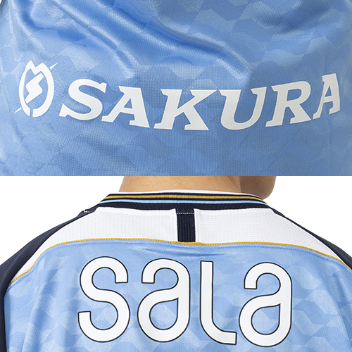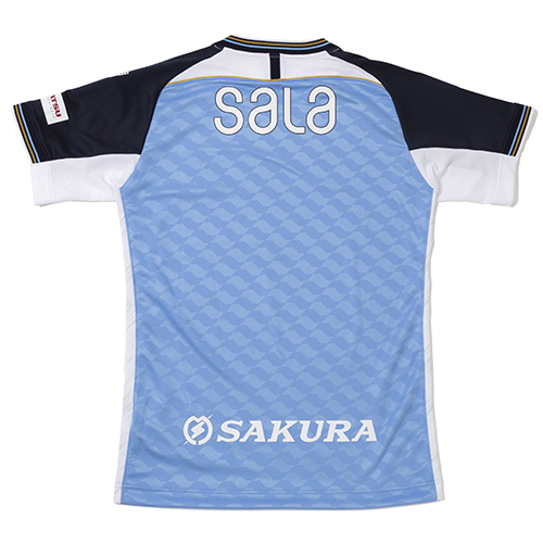 天に昇っていく竜」に喩えて名付けられたともいわれる、ホームタウンに豊かな恵みをもたらす天竜川のように、強く愛されるクラブへ進化し続けたいという願いをジャガード編みの生地で表現。背中のゴールドラインには、ジュビロ磐田に関わるすべての人々が肩を組み、一丸となって勝利を目指すという想いが込められています。