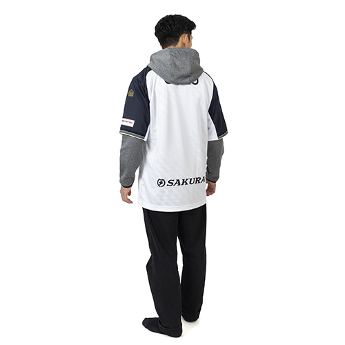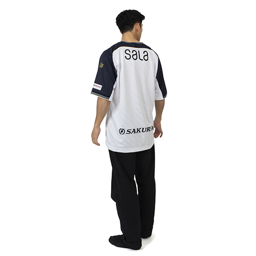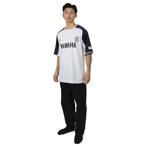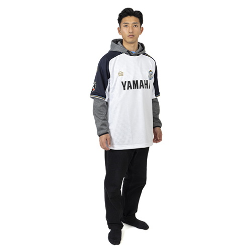 天に昇っていく竜」に喩えて名付けられたともいわれる、ホームタウンに豊かな恵みをもたらす天竜川のように、強く愛されるクラブへ進化し続けたいという願いをジャガード編みの生地で表現。背中のゴールドラインには、ジュビロ磐田に関わるすべての人々が肩を組み、一丸となって勝利を目指すという想いが込められています。