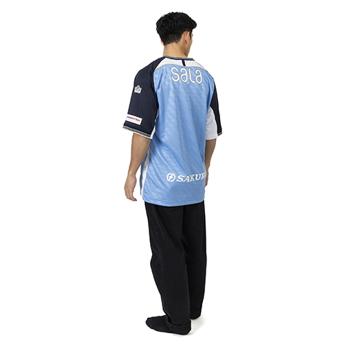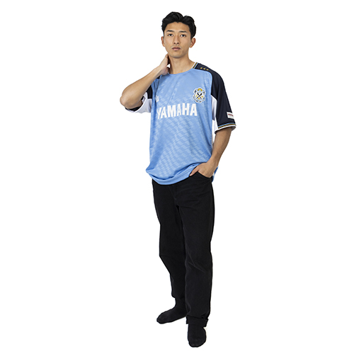 天に昇っていく竜」に喩えて名付けられたともいわれる、ホームタウンに豊かな恵みをもたらす天竜川のように、強く愛されるクラブへ進化し続けたいという願いをジャガード編みの生地で表現。背中のゴールドラインには、ジュビロ磐田に関わるすべての人々が肩を組み、一丸となって勝利を目指すという想いが込められています。