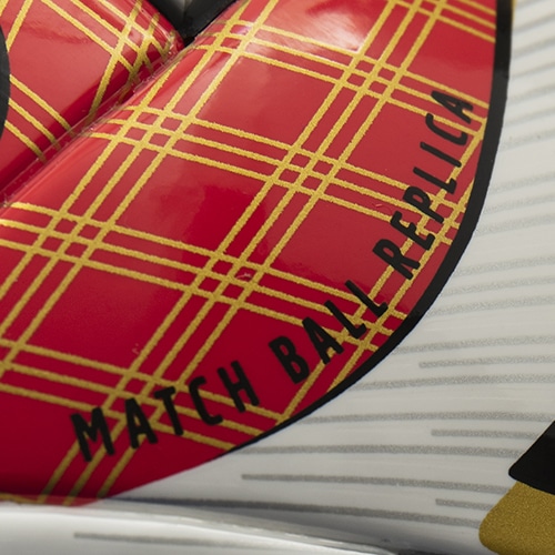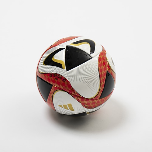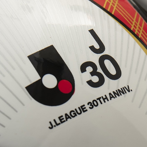 30周年の華やかさと日本の和を融合させたオリジナルボールです。2023年FIFA主要試合球『オーシャンズ』のデザインをベースに、カラーリングではJリーグカラーの赤・白・黒を採用。また、デザイン細部ではJリーグ全クラブの印字をゴールドカラーで施しつつ、無病息災や厄除けの意味を持つ“三重菱”の和柄も採用し、近年の新型コロナウイルスの影響による生活での人々への想いも込めています。名称の「コトホギ30」は、言葉で祝うこと、祝賀を意味する “言祝ぎ”と“30周年”を組み合わせた造語であり、日本のJリーグ30周年を記念した祝福のメッセージを世界へ発信いたします。