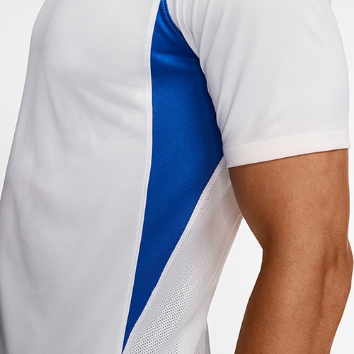 DRI-FITテクノロジーがさらりと快適な着用感を提供し、集中力をキープできます。脇下と肩のメッシュインセットで通気性をプラス。縫い目にテーピングを施したハイブリッドVネックで、滑らかな肌触り。