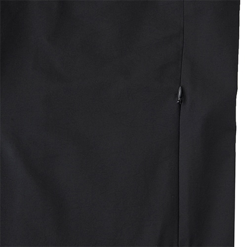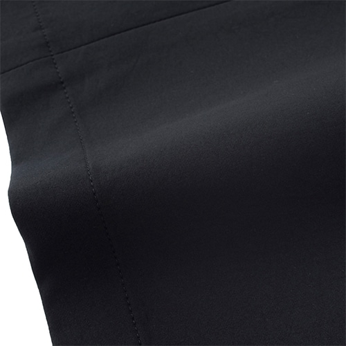 高伸縮機能糸のTEXBRIDを使ったオリジナルの二重織を採用。 4WAYストレッチで柔らかく膨らみをもたせながらもTEXBRIDでハリを出し、裏面は点接触にすることでドライタッチを実現。制電糸を使用した裏面は帯電しにくい効果を備えています。コンシールファスナー付きポケットがパンツ同様、美しいシルエットと機能性を兼備した定番アイテム。