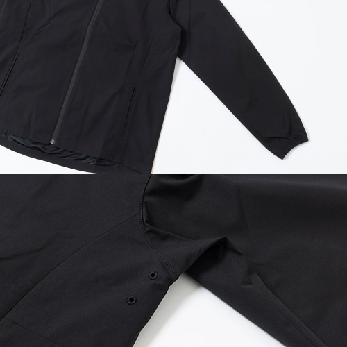 表地に優れた撥水性と防風性を発揮するストレッチウーブン、裏地にサラリとした着心地を提供するメッシュを使用。脇部にベンチレーションホール、左右にサイドにポケットを備えています。Jリーグプレーヤーの移動着として、サッカーファンのファッション着として多彩に活躍します。