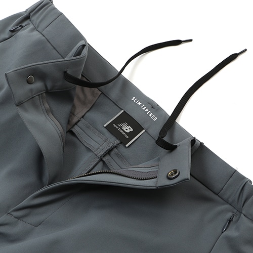 バネ状の分子構造によって、着る人の体の動きに合わせて伸縮するTEXBRIDの糸を用いて開発したニューバランスオリジナルの高機能素材(モックロディ)を起用し、機能的なガゼットクロッチやコンシールファスナー付きポケットが快適さと動きやすさを高めてくれます。SLIM TAPERED FITは、合わせやすく穿きやすい万能シルエット。