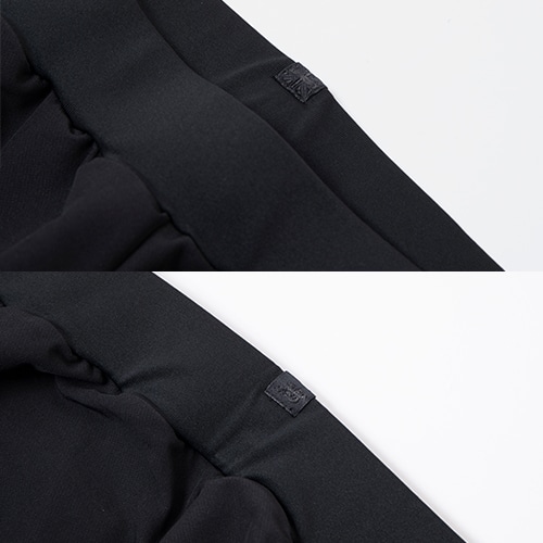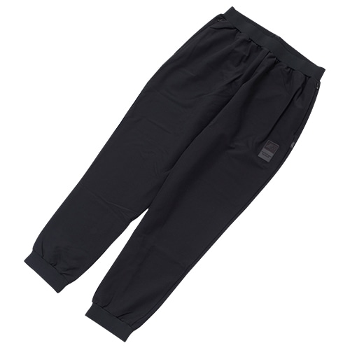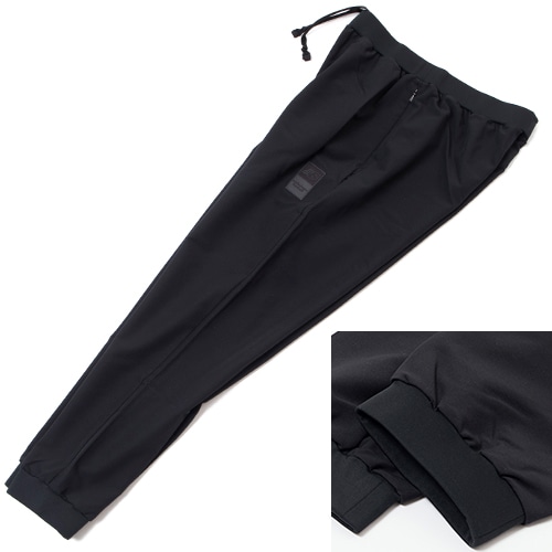 裾にリブを備えた着脱しやすいジョガースタイルです。メイン素材は優れた伸縮性と防風性、心地よい綿タッチの裏起毛4WAYストレッチウーブン、ウエスト部はストレッチスムースで切替えました。トレーニング、移動着、リラックスウエアとして幅広く活躍します。ストレッチウーブントップとのセットアップもおすすめです。コンシールポケット付き。