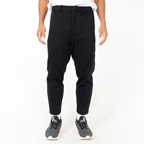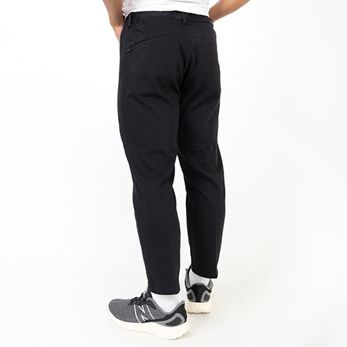 高伸縮機能糸のTEXBRIDを使ったオリジナルのカルゼジャージを採用し、4WAYストレッチの動きやすさと適度なハリ感を実現。裏面は制電糸を使用した点接触構造で、帯電しにくくドライな肌触りに仕上げました。ガゼットクロッチ構造とコンシールファスナーポケットを備えた、合わせやすい万能ボトムです。