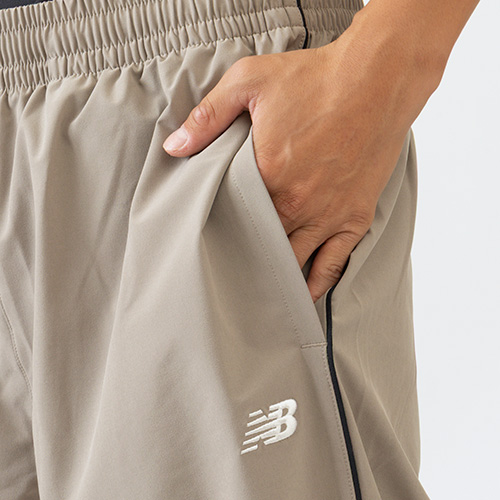 日本人の体系に合うようスマートに見えるジョガーシルエットに、ジップ付きハンドポケットにはNBロゴスライダー、先端をディップしたドローコードなどディティールまでこだわった一着。高いストレッチ性で動きやすく、吸汗速乾性に優れたNB Dryがカラダをドライにキープ。左腿のNBロゴ刺繍がワンポイント。