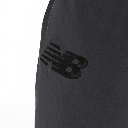 腰ポケットには引き手にリフレクター付きファスナーを採用し、リラックスドフィットで仕上げました。ウエストは総ゴム仕様でドローコードも備えています。左腿のNBメガスピードロゴ、右足裏のNBロゴがアクセント。