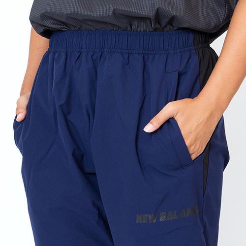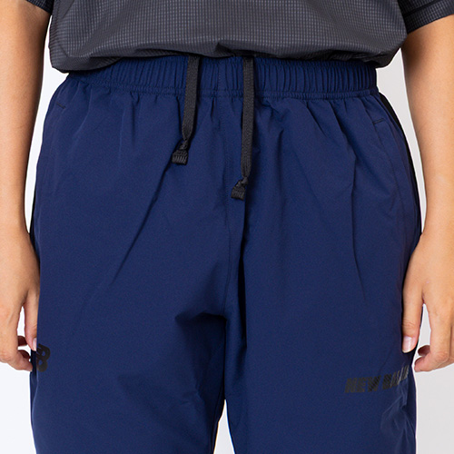 右腿のNBロゴ、左腿のロゴグラフィックをクールなカラーで展開。シューズを履いたままでも脱ぎ穿きしやすい裾ジップにも対応した、トレーニングやアクティブな場面で活躍するアイテム。