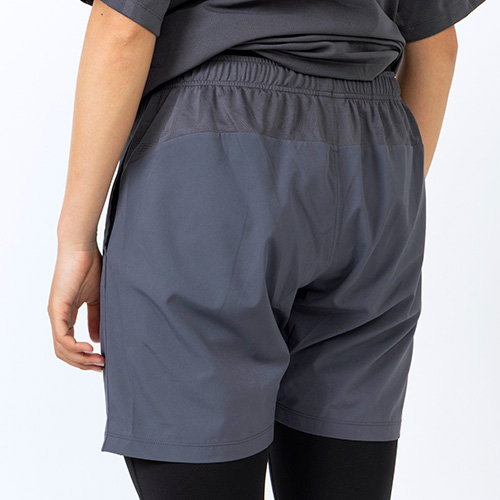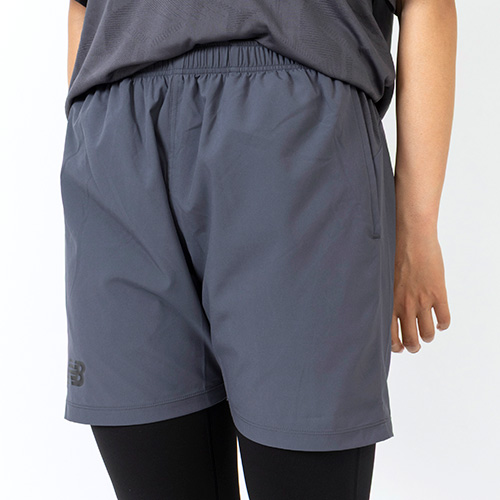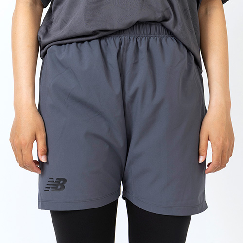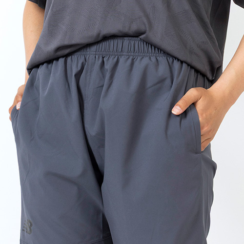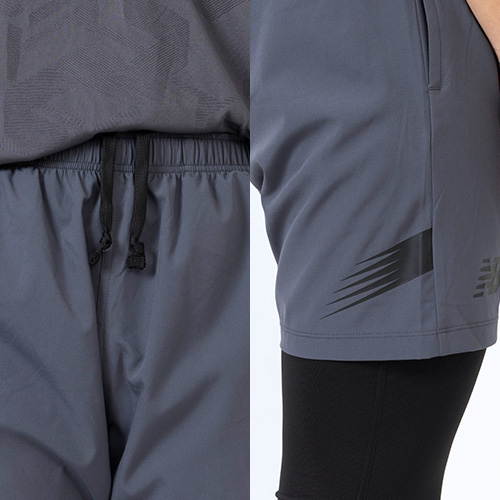 ウエストヨーク部分に、エンボス加工でNBメガスピードロゴをデザインし、吸汗速乾性に優れたNB Dryに対応。ウエストは総ゴム仕様でドローコードも備えています。右後ろ裾にNBメガスピードロゴ、脇ポケット付きです。