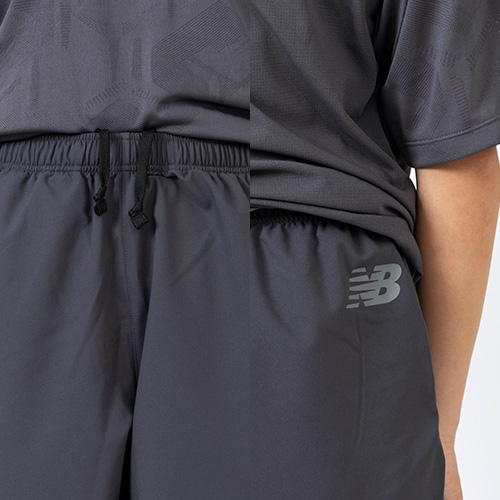 ハリ感のある素材がスッキリ見えするルックスで、吸汗速乾性に優れたNB Dryがサラッとした快適な着心地を提供。伸縮性ある生地と両裾のスリットで動きやすく、ウエストは総ゴム仕様でドローコードも備えています。左右ポケット付き。左裾のNBメガスピードロゴがワンポイントです。