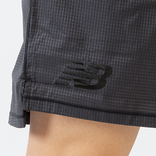 ストレッチ性と通気性に優れたメッシュウーブン素材が、動きやすく快適な着心地を実現。左右ハンドポケット、右裾にNBロゴ刺繍、左裾にサークルロゴワッペンをクールなカラーでまとめた一着。