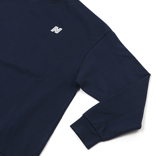 糸の中心をポリエステルにしその周に綿糸を巻き付けてカバーリングしていることで、肌に触れる部分は綿になり、肌にも優しく快適な着心地感があり適度なハリコシ感や速乾性も高まるこだわりのニューバランスオリジナル素材を起用したゆったりとしたオーバーサイズシルエット。