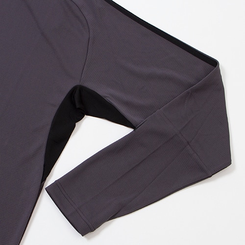 肩から袖にロゴアクセント入りのストライプをアレンジしたプラクティスシャツロングスリーブ。心地よい肌触りの軽量なスムースメッシュ素材を使用しているので、夏の暑さや強い日差し対策、寒暖差の激しい秋の温度調整などに最適です。