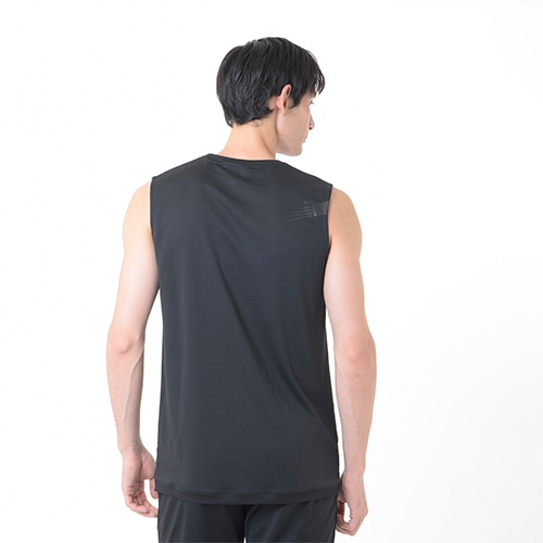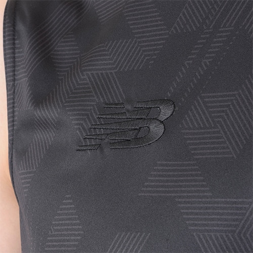 メガスピードモチーフの総柄スムースニットを前身頃、メッシュニットを後身頃に使用し、フライングNBロゴ刺繍、NB DRYロゴプリントで仕上げました。