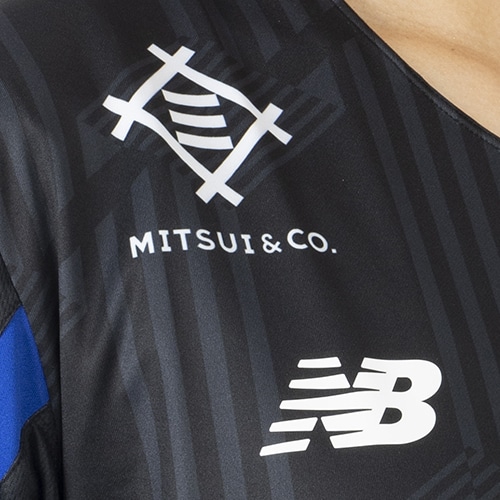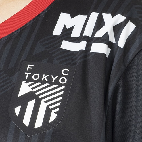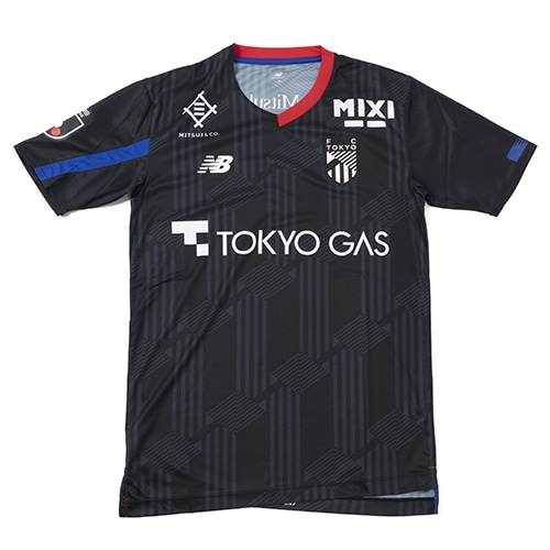 new balance FOOTBALLの代名詞"BLACK OUT"と連動したデザイン。シリアルナンバー入り。"誰色にも染まりたくない自分の思う理想の自分"がBLACKOUTのコンセプトであり、だれにも染まらないカラーであるブラックをボディに、衿や袖、裾脇にFC東京の青・赤を差しカラーとして採用。ブラックの中に青・赤が刺されることでよりFC東京カラーを木さだたせます。2024年のグローバルコンセプト"Life at the intersection"をテーマにスポーツとファッションの融合を掲げブラックのユニフォームにトーナルでFC東京のパターンを総柄で表現する事で、FC東京の強さや威厳がより引き出されます。オーセンティックにはジャガード柄のグラフィックに最先端な都市と建物が融合した建築デザイン、ゲームデザインやミュージックビデオなどのデジタルデザイン、唐草模様、江戸切子に代表される伝統工芸の要素を取り入れ、最先端を感じるデザインをユニフォームに落とし込んでいる。