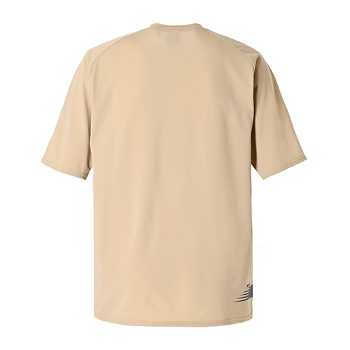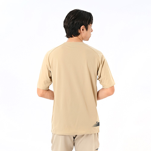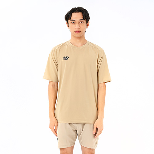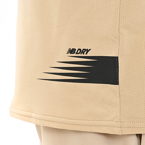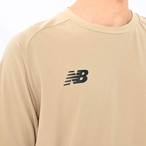 素材がドッド状になっているので通気性が高く、吸汗速乾性に優れたNB Dryがサラッとした快適な着心地を提供。動きやすいラグランスリーブで、気温の高い時期でも快適に過ごせます。右裾のNBメガスピードロゴがアクセント。