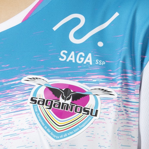 サガン鳥栖のエンブレムの由来である勝利のVictoryから着想を得て、貪欲に勝利を向かう姿勢を表しています。ジャガードには風車柄を表現。風車柄には、アジリティー、柔軟かつ迅速に対応し試合を支配するという意味が込められている。