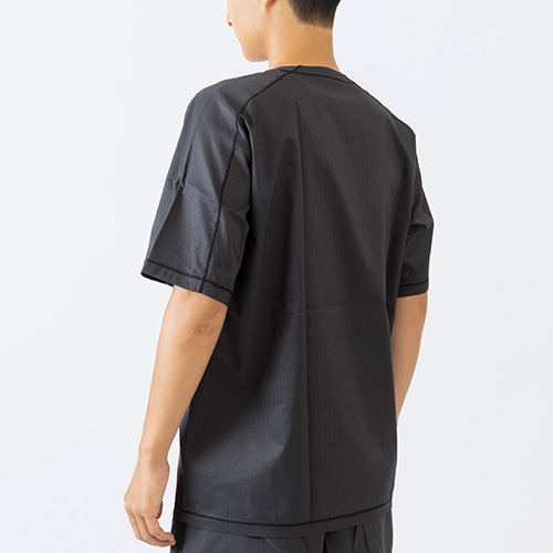 Black Out メッシュストレッチ ウーブンショートスリーブシャツ