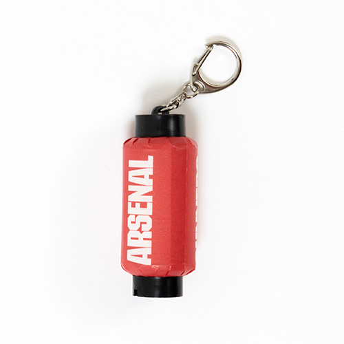 クラブのエンブレムがデザインされた提灯型キーホルダー。