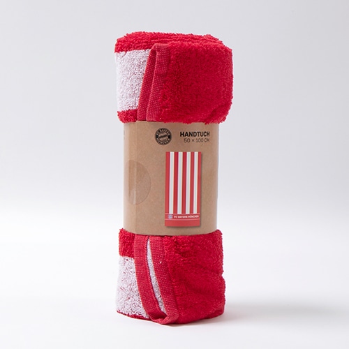 - ブンデスリーガ(ドイツ)、バイエルン・ミュンヘンのオフィシャルグッズ。クラブエンブレムがデザインされたスポーツタオル。サイズ:100×50cm