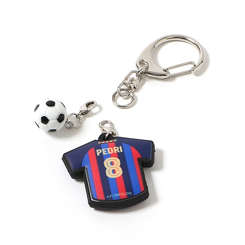 - スペイン・リーガエスパニョーラ、FCバルセロナのオフィシャルグッズ。2022-23シーズンユニフォームデザインのラバーキーホルダー、#8 ペドリ選手。