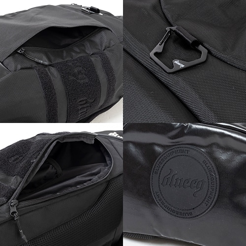 blueeqオリジナル素材のHRS(ハニカムリップストップ)生地を採用。耐衝撃性と防水性に優れたHRS生地と耐久性に優れた定番の1680D(デニール)ポリエステル生地のコンビネーション。水、日光、汗による色落ちがしにくい圧倒的な耐久性が特徴。