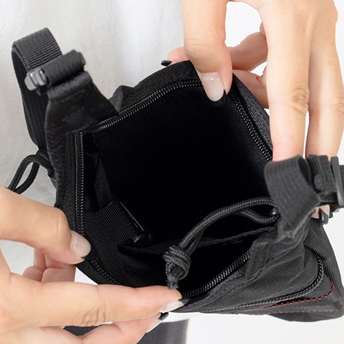 ●使用頻度の高い小物アイテムの収納に最適なフロントのジップポケット。